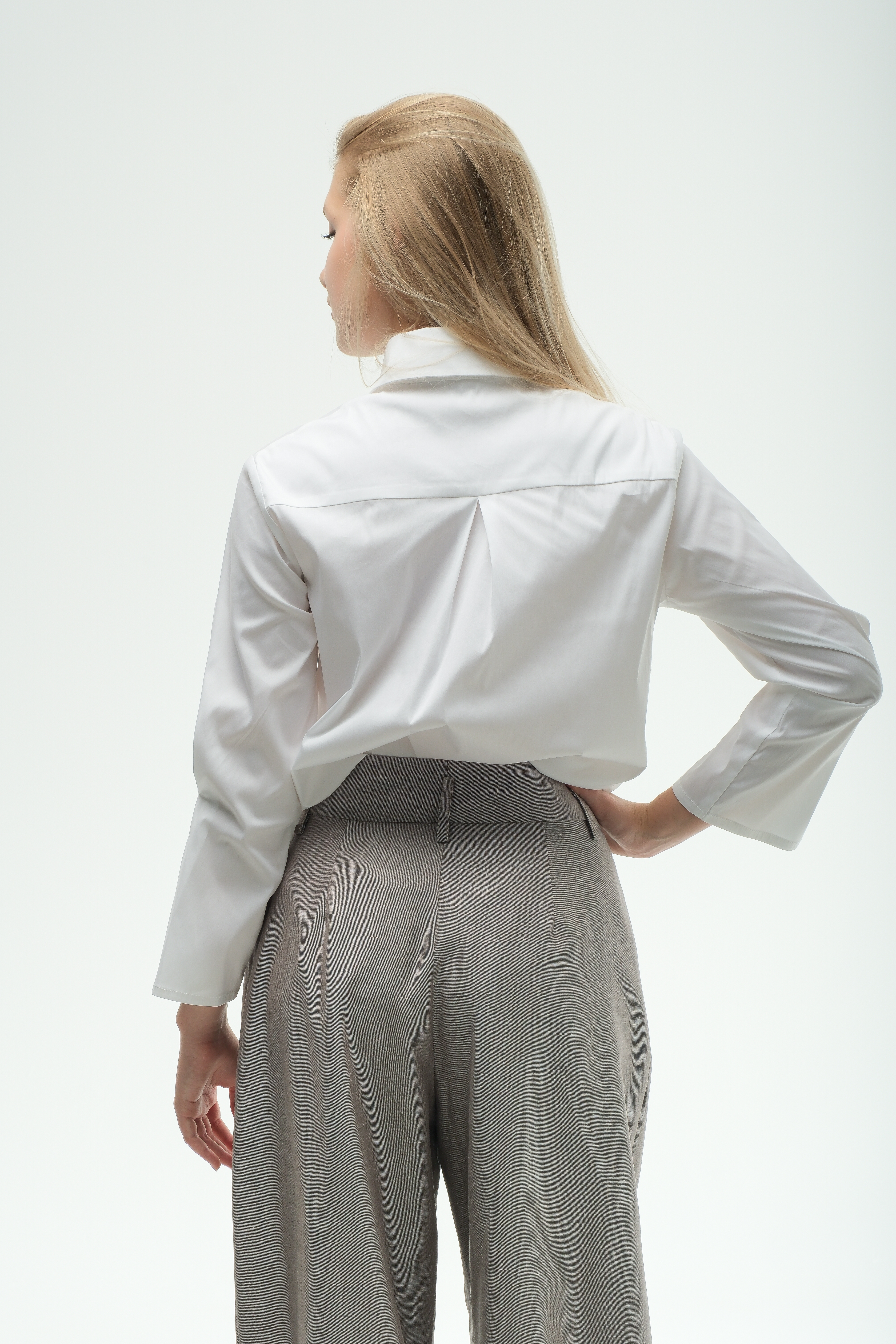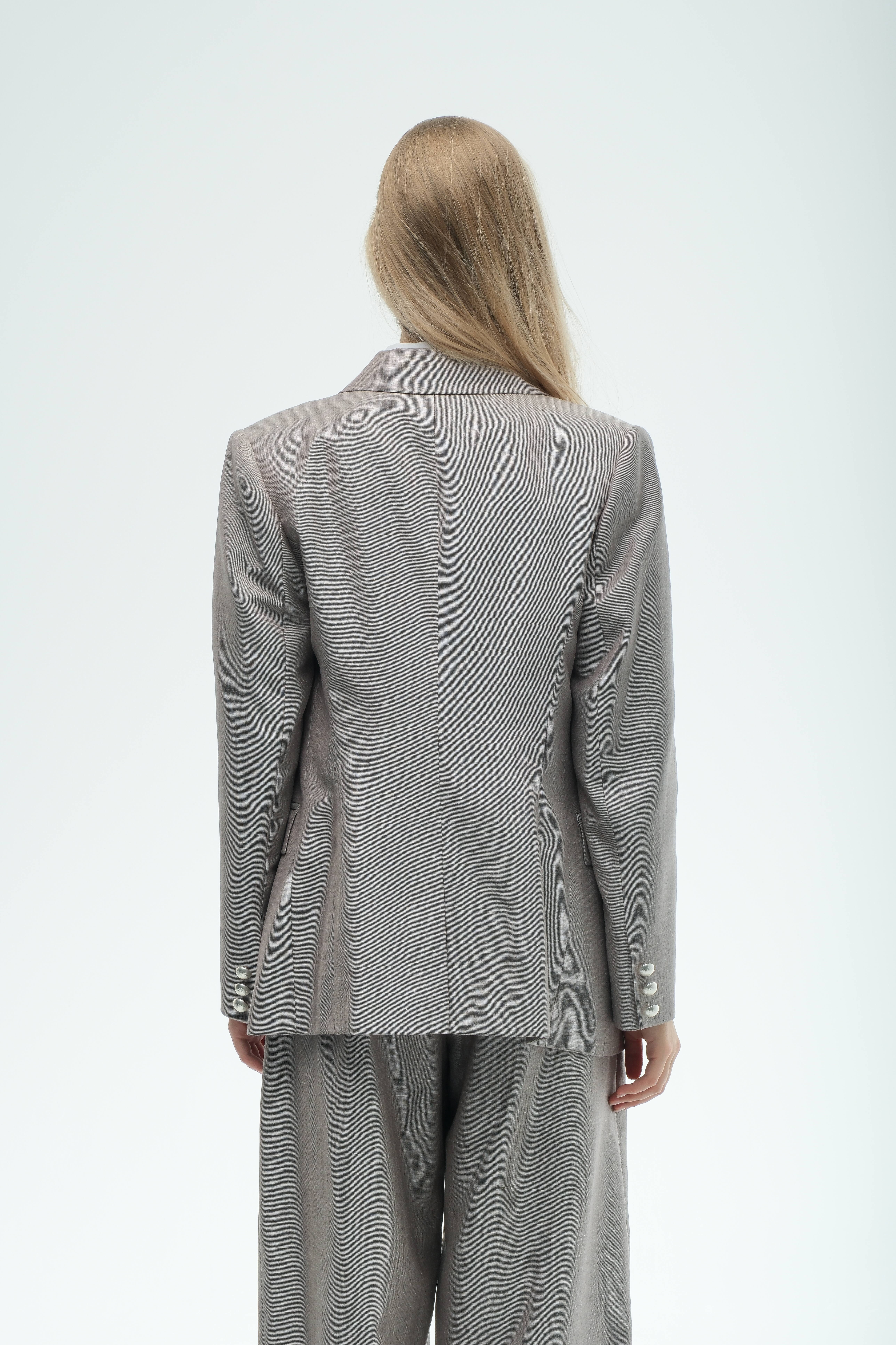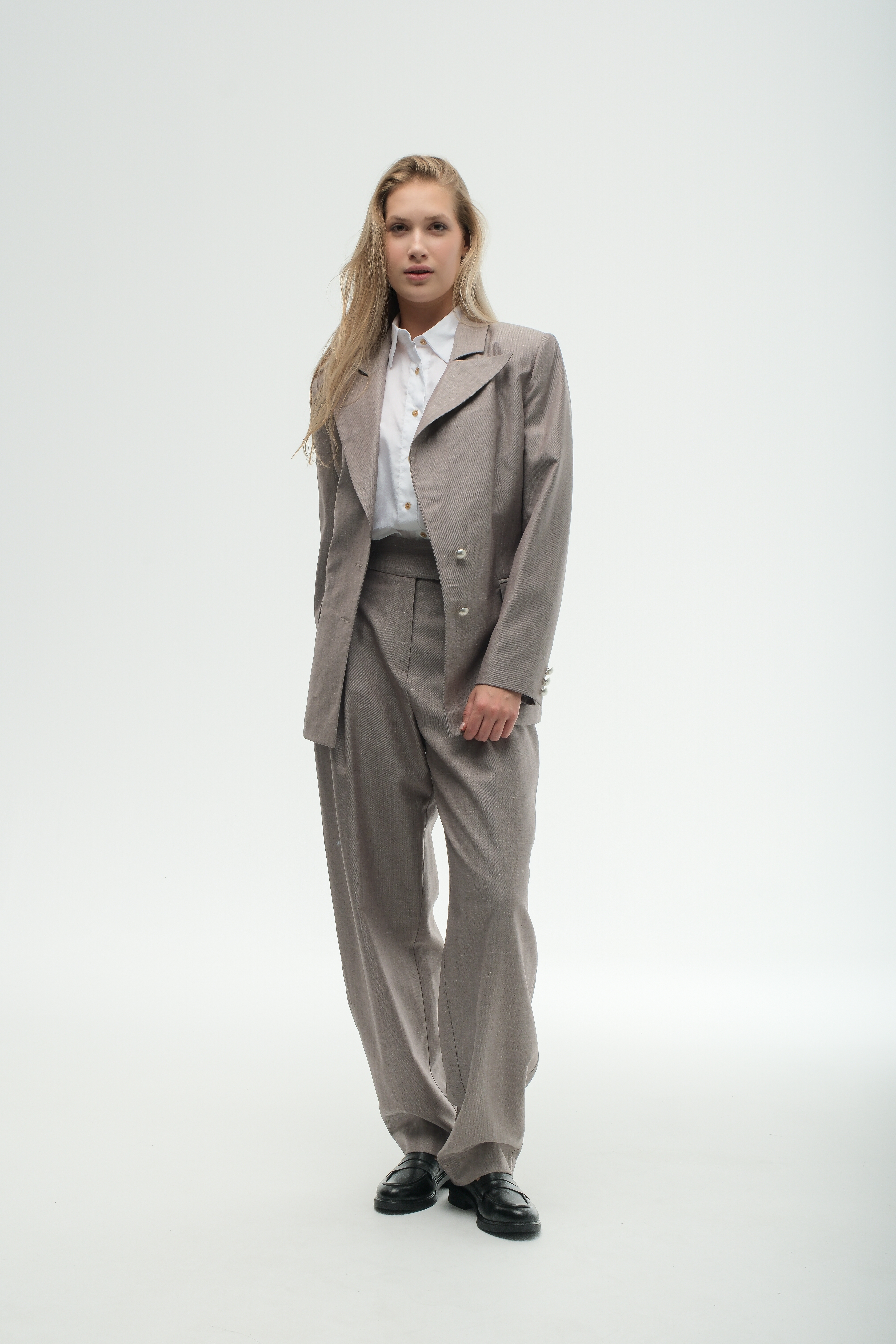 Костюм Lunare — це інтерпретація сучасної жіночої елегантності через архітектурний крій і благородну натуральну тканину.