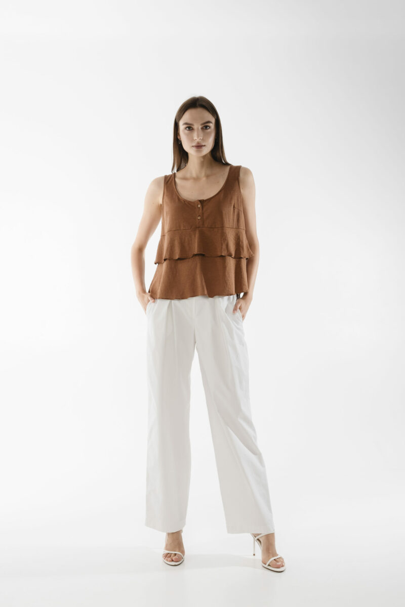 Прати в делікатному режимі за температури не більше 30 °C. Використовувати м’які засоби для прання, призначені для делікатних тканин. Уникати відбілювачів та сильних хімічних речовин. Сушити у розкладеному вигляді, уникаючи прямого сонячного світла та нагрівальних приладів. Прасувати при низькій температурі, бажано через тканину. Дотримання цих рекомендацій допоможе зберегти форму, колір та м’якість ваших штанів, продовживши їхній бездоганний вигляд на довгі роки.