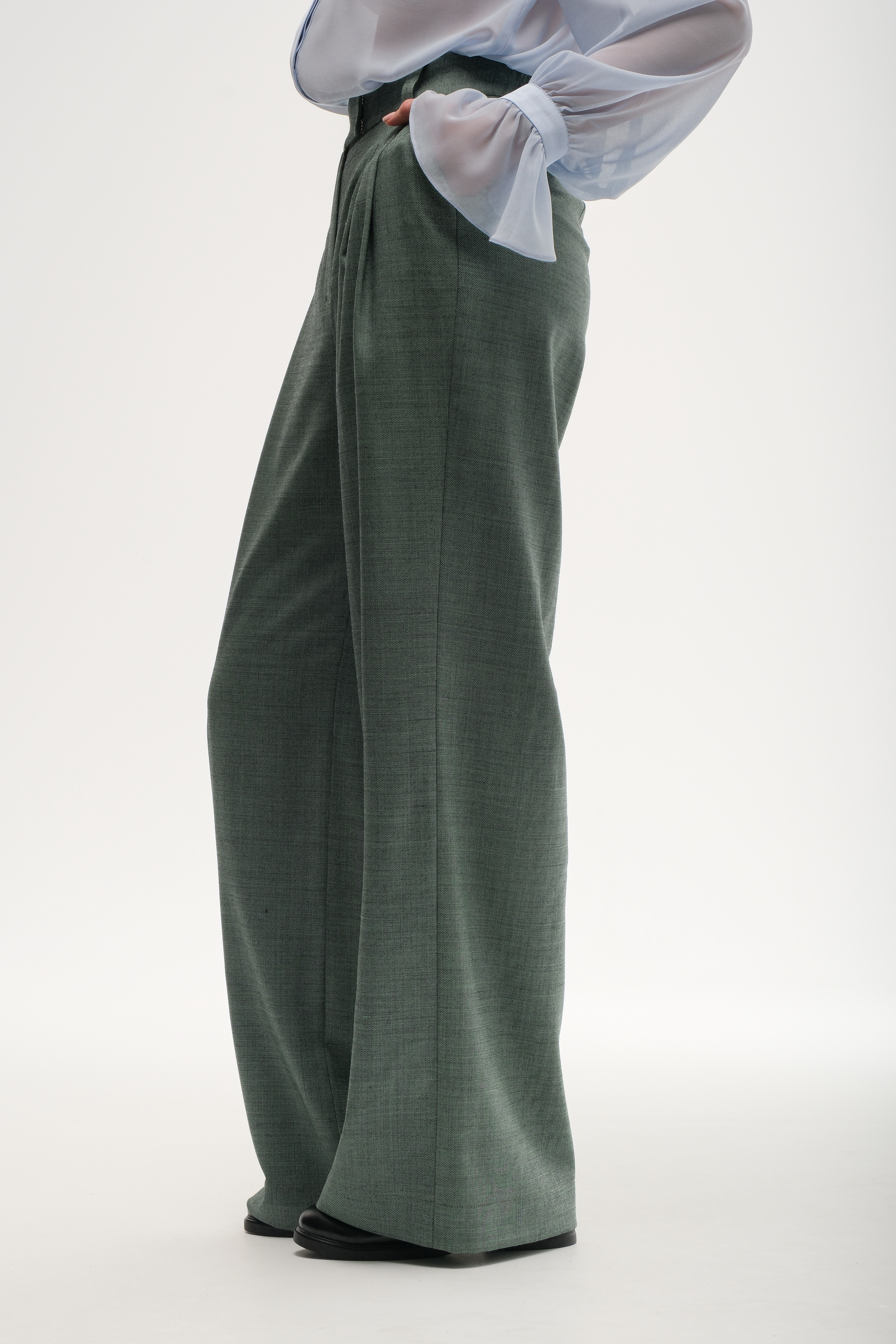 Посадка на талії візуально витягує фігуру, водночас забезпечуючи природну легкість у русі. Штани легко переходять від класичних поєднань до більш розслаблених образів, стаючи універсальною основою гардероба.